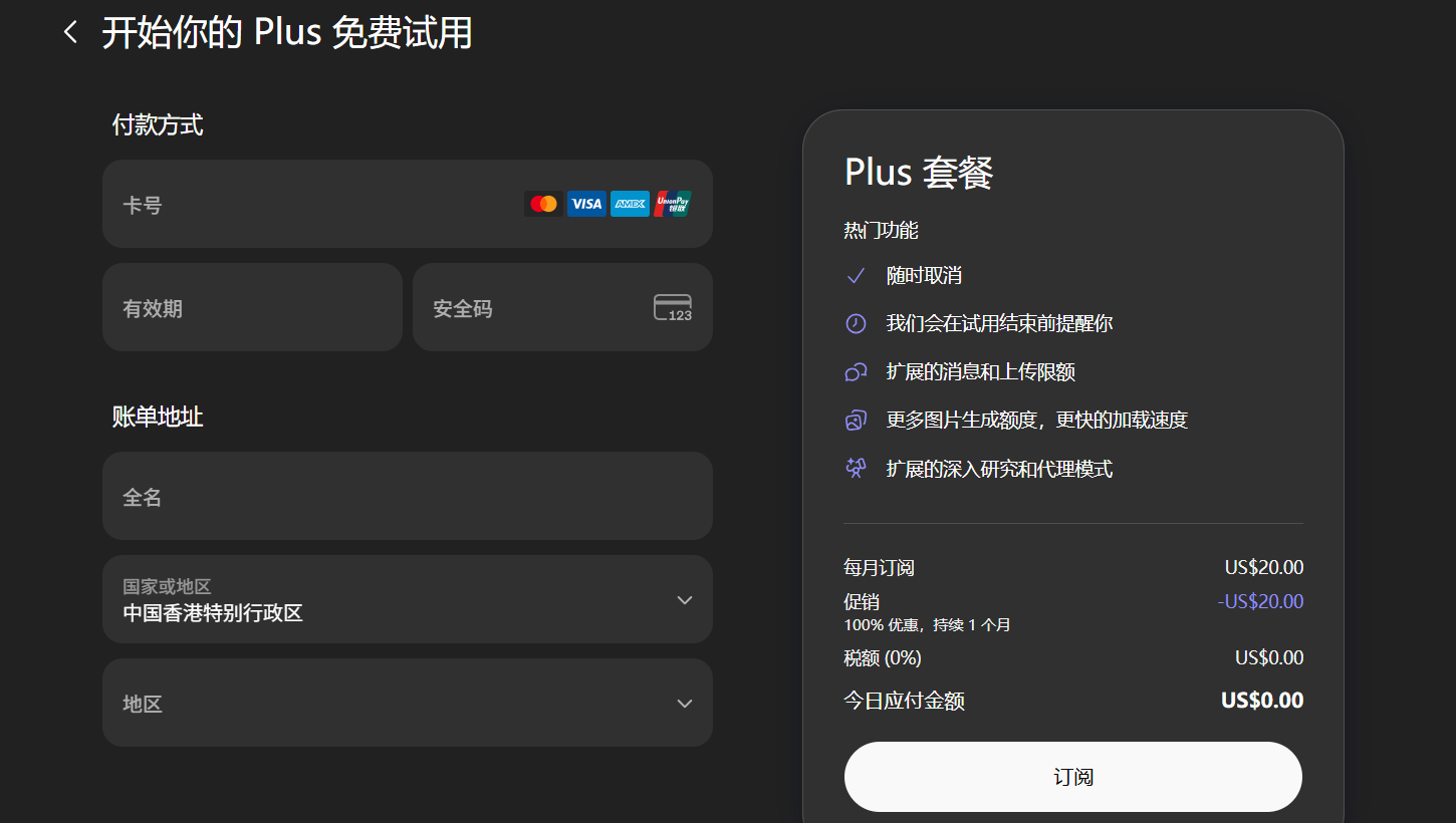 但是! 即使你愿意支付 $20(Plus)甚至 $200(Pro)的订阅费,最大的拦路虎依然是——OpenAI 不支持国内信用卡支付。(注意一定要是美国节点)