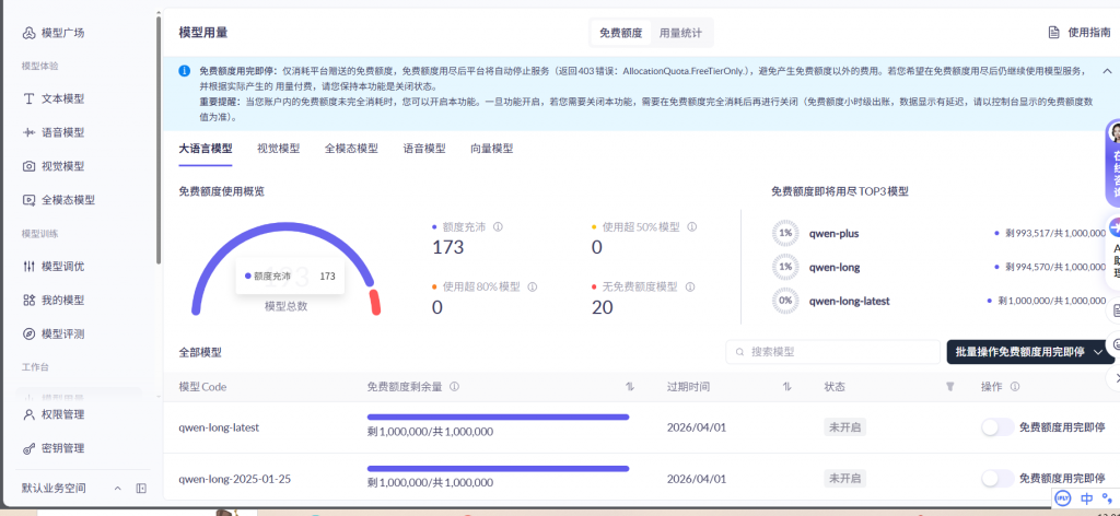qwen-long-latest(超长上下文)和claude-3-5-sonnet。 - 零成本:阿里云新用户送大量 Token 额度,配合