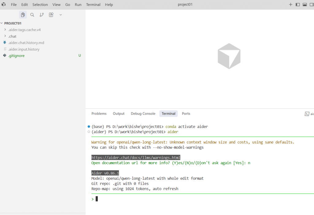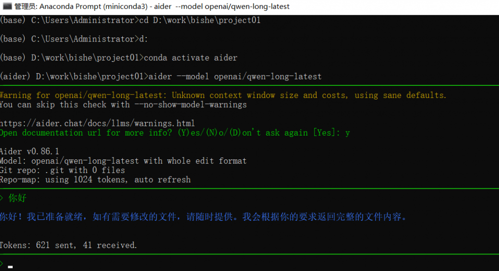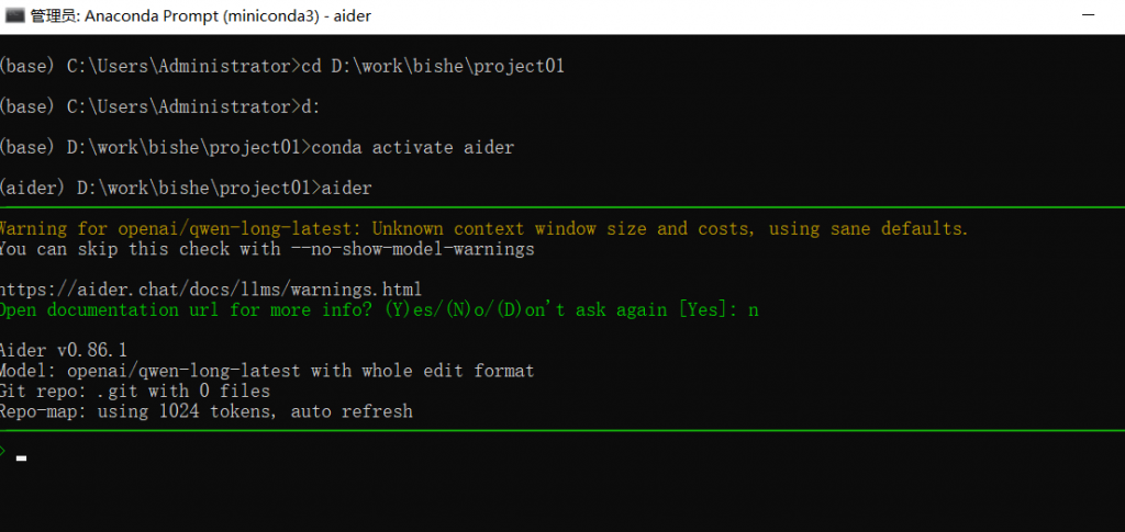 aider --model openai/qwen-long-latest强制指定。 - 乱码问题:Windows 终端如果显示奇怪字符,执行