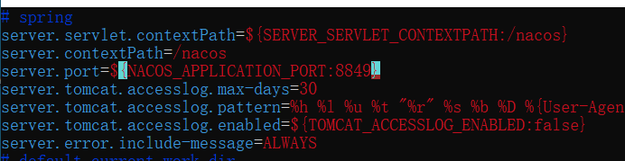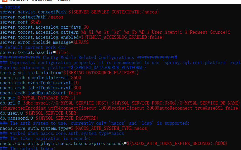 先把配置文件进行修改,改成8848,配置文件在/root/nacos/application.properties